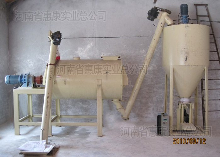 節(jié)能型生產(chǎn)線,由脈沖除塵器、斗式提升機(jī)、雙軸無重力混合機(jī)(含飛刀組)、成品倉(含二次攪拌)、自動定量包裝機(jī)(閥口式&敞口式)、鋼架平臺、空壓機(jī)、氣路系統(tǒng)、電氣控制柜等組成的中型流水作業(yè)體系。 整套流水線,布局合理,結(jié)構(gòu)緊湊,粉塵少,噪音小,運(yùn)行平穩(wěn)??偂?/p>