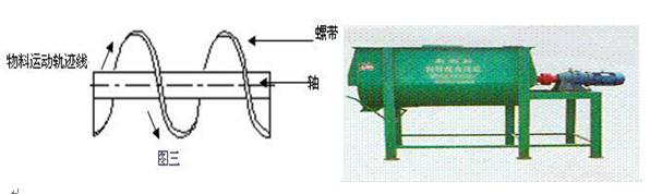 臥式單軸單螺帶混合機最典型的代表就是砂漿混合機(圖三),由于單螺帶推動物料向一個方向運動,混合效率較低,殘留量較大,適合不加添加劑的膏狀水泥砂漿的混合,不適合膩子粉,外保溫砂漿干混料等粉體材料的攪拌混合。