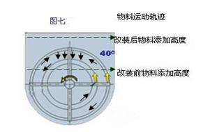 單軸雙螺干粉混合機一般上海,山東 ,江陰,常州等地化工設(shè)備廠均有生產(chǎn)。在我們長期的生產(chǎn)實踐過程中發(fā)現(xiàn)外層螺帶與筒壁有40 度的夾角(如圖七) ,生產(chǎn)原料超過軸面以后就不再運動,混合攪拌就不均勻,這樣容積為1立方米的機 器利用率只有85%,加大機器的成本。我們將機體的形狀由U型改裝為橢圓型(如圖六),把平板上蓋改變?yōu)閳A形上蓋,使超過螺帶的物料沿機體落下達(dá)到充分混 合攪拌的目的,使混合機的利用率提高30%,例如改裝前1000公斤的機器添加量為850公斤改裝后添加量為1200公斤,而成本不增加頗受用戶的歡迎。 目前單軸多螺帶混合機已獲得國家專利,專利號: ZL200820003900.1/ZL200830008184.1
